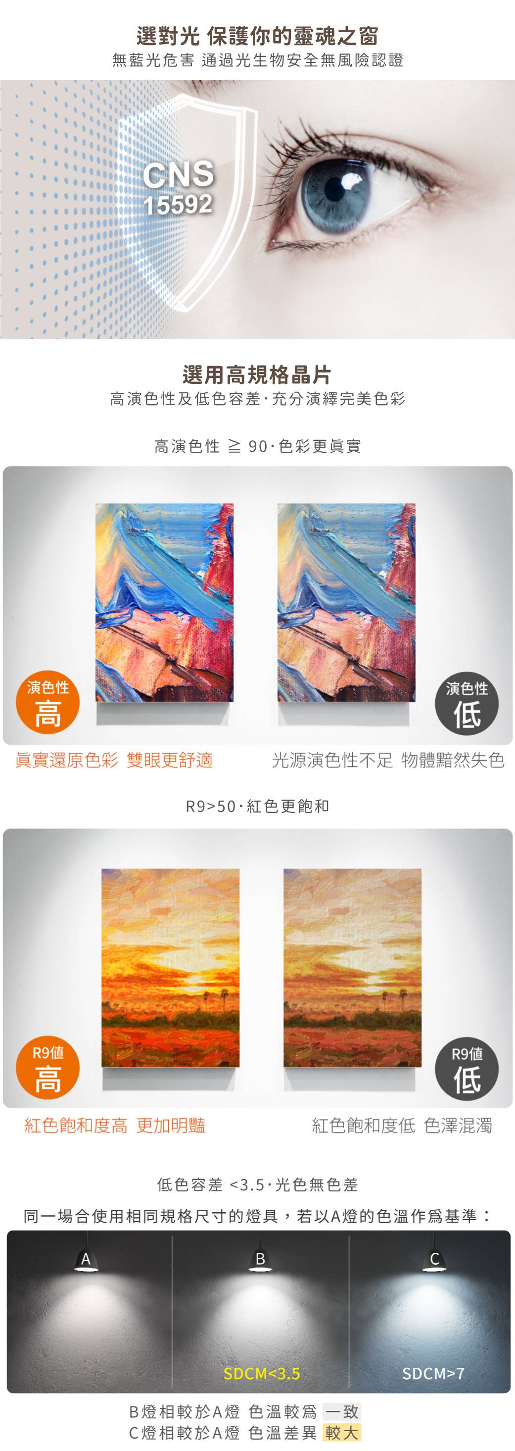 ➤高規格晶片.SDCM<3.5 光色無色差
